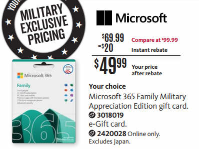 Microsoft 365 Family Military Edition 2020 eGift Card (Email Delivery)