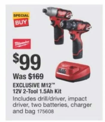 Milwaukee M12 12V Lithium-Ion Cordless Drill Driver/Impact Driver Combo Kit w/ Two 1.5Ah Batteries, Charger Tool Bag (2-Tool)