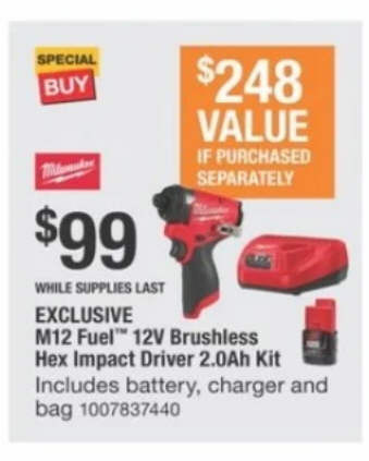 Milwaukee M12 FUEL 12-Volt Lithium-Ion Brushless Cordless 1/4 in. Hex Impact Driver Compact Kit W 2.0Ah Battery and Bag