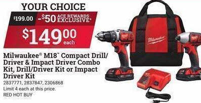 Milwaukee M18 Compact Drill/Driver & Impact Driver Combo Kit, Drill/Driver Kit or Impact Driver Kit