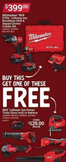 Milwaukee M18 FUEL Lithium-Ion Brushless Drill & Impact Driver Combo Kit + Free Power Tool + Battery