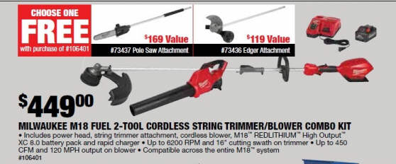 Milwaukee M18 Fuel 2-Tool Cordless String Trimmer/Blower Combo Kit - Complete 18V Li-Ion System, Model# 3000-21 (Free Tools with Purchase)