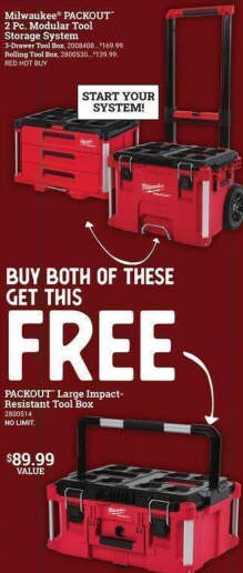 Milwaukee PACKOUT 2 Pc. Modular Tool Storage System + Milwaukee 3-Drawer Tool Box + Free Tool Box