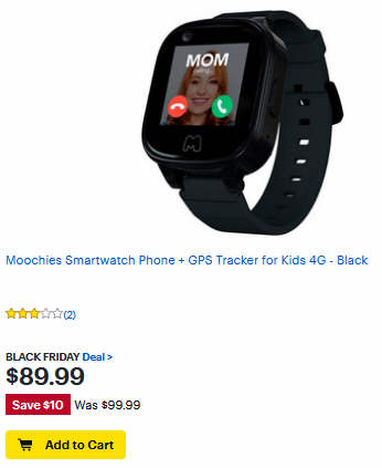 Moochies Smartwatch Phone + GPS Tracker for Kids 4G - Black