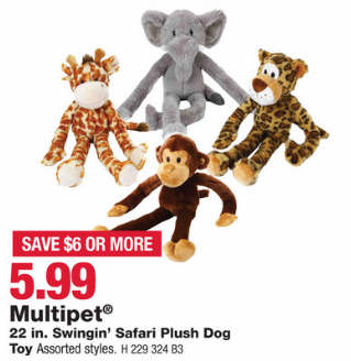Multipet 22 in. Swingin' Safari Plush Dog Toy