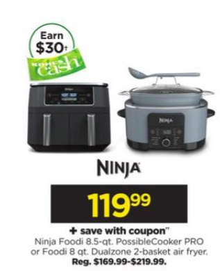 Ninja Foodi 8.5-qt. PossibleCooker PRO or Foodi 8 qt. Dualzone 2-basket air fryer (save with coupon & Earn $15 KOHL'S cash)