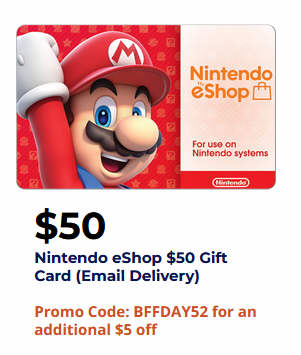 Nintendo eShop $50 Gift Card (Email Delivery) for $50 via Promo Code: BFFDAY52