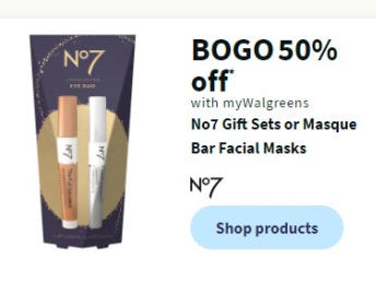 No7 Gift Sets or Masque Bar Facial Masks BOGO 50% off