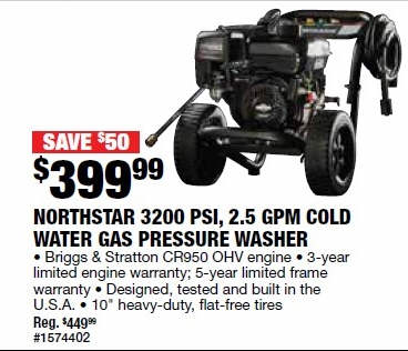 NorthStar Gas Cold Water Pressure Washer - 3200 PSI, 2.5 GPM, Briggs & Stratton Engine
