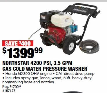 NorthStar Gas Cold Water Pressure Washer - 4200 PSI, 3.5 GPM, Honda Engine, Model# 157127