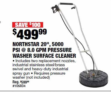 NorthStar Pressure Washer Surface Cleaner - 20in., 5000 PSI, 8.0 GPM, Model# Floater 20
