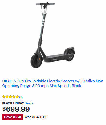 OKAI - NEON Pro Foldable Electric Scooter w/ 50 Miles Max Operating Range & 20 mph Max Speed - Black