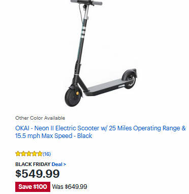 OKAI - Neon II Electric Scooter w/ 25 Miles Operating Range & 15.5 mph Max Speed - Black