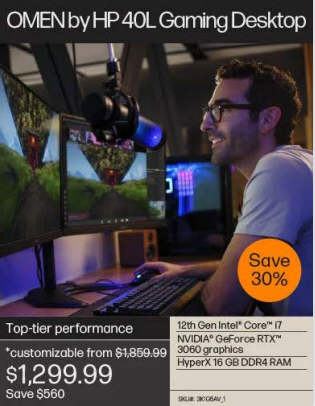OMEN 40L Gaming Desktop 12th Gen Intel Core i7 NVIDIA GeForce RTX 3060 graphics HyperX 16 GB DDR4 RAM