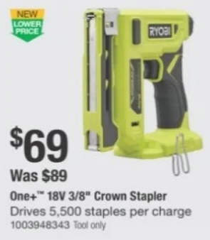 ONE+ 18V Cordless Compression Drive 3/8 in. Crown Stapler (Tool Only)
