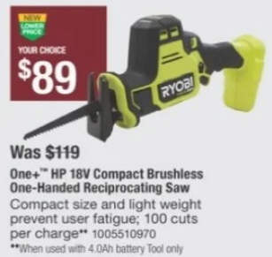 ONE+ HP 18V Brushless Cordless Compact One-Handed Reciprocating Saw (Tool Only)