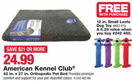 Orthopedic Pet Bed,, 42 x 27-In. + 12-In. Small Loofa Dog Toy