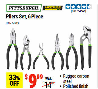 PITTSBURGH Pliers Set, 6 Piece