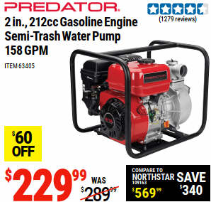 PREDATOR 2 in. 212cc Gasoline Engine Semi-Trash Water Pump - 158 GPM