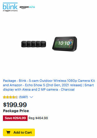 Package - Blink - 5-cam Outdoor Wireless 1080p Camera Kit and Amazon - Echo Show 5 (2nd Gen, 2021 release) | Smart display with Alexa and 2 MP camera - Charcoal
