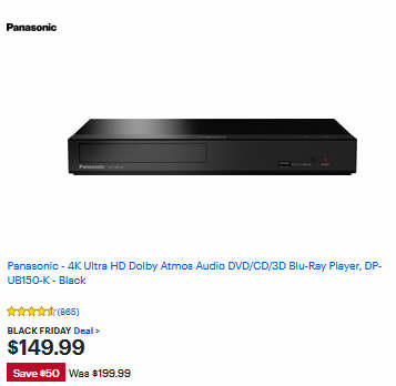 Panasonic - 4K Ultra HD Dolby Atmos Audio DVD/CD/3D Blu-Ray Player, DP-UB150-K - Black