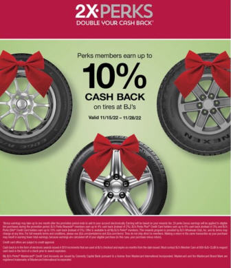 Perks members earn up to 10% Cash Back on tires at BJ's
