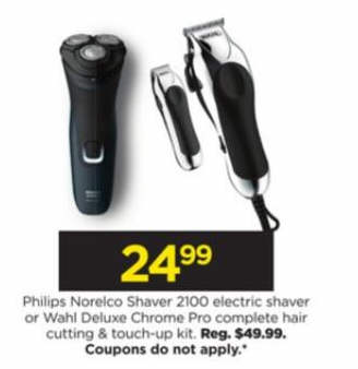 Philips Norelco Shaver 2100 Electric Shaver or Wahl Deluxe Chrome Pro Complete Hair Cutting & Touch-Up Kit