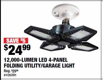 Pinegreen Lighting LED 4-Panel Folding Utility/Garage Light - 12,000 Lumens, Model# CL-BU-G120