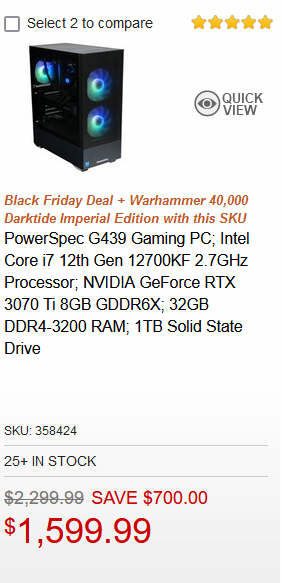 PowerSpec G439 Gaming PC Intel Core i7 12th Gen 12700KF 2.7GHz Processor; NVIDIA GeForce RTX 3070 Ti 8GB GDDR6X; 32GB DDR4-3200 RAM; 1TB Solid State Drive