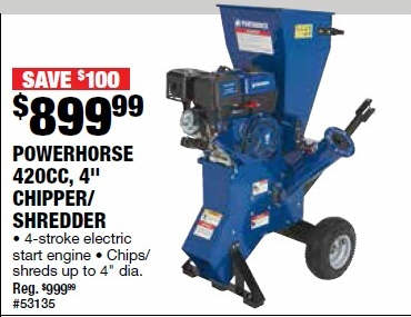 Powerhorse Wood Chipper/Shredder - 420cc Powerhorse OHV Engine, 4in. Chipping Capacity