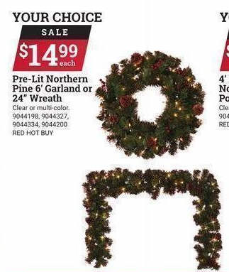 Pre-Lit Northern Pine 6' Garland or 24" Wreath