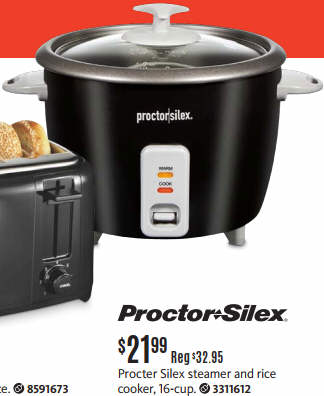 Proctor Silex Steamer and Rice Cooker, 16-cup.
