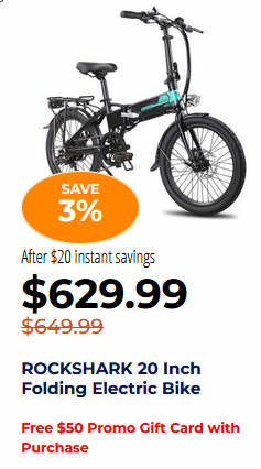 ROCKSHARK 20 Inch Folding Electric Bike Free $50 Promo Gift Card with Purchase