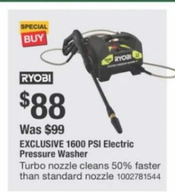 RYOBI 1,600 PSI 1.2 GPM Electric Pressure Wash