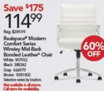 Realspace Modern Comfort Winsley Bonded Leather Mid-Back Manager's Chair, White/Silver