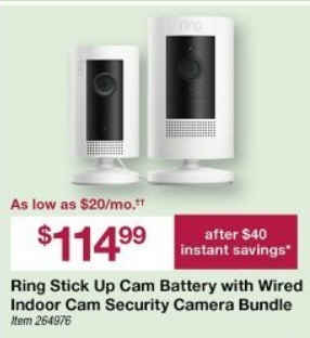 Ring Security Camera Bundle with Wired Indoor Cam and Battery Powered Stick Up Cam