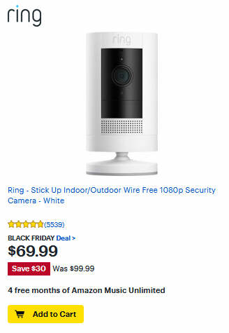 Ring - Stick Up Indoor/Outdoor Wire Free 1080p Security Camera - White