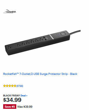 Rocketfish 7-Outlet/2-USB Surge Protector Strip - Black