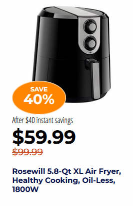 Rosewill 5.8-Qt XL Air Fryer, Healthy Cooking, Oil-Less, 1800W