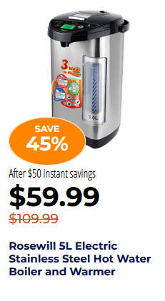 Rosewill 5L Electric Stainless Steel Hot Water Boiler and Warmer