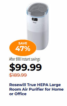 Rosewill True HEPA Large Room Air Purifier for Home or Office