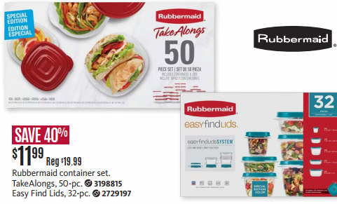 Rubbermaid container set. TakeAlongs, 50-pc.or Easy Find Lids, 32-pc.