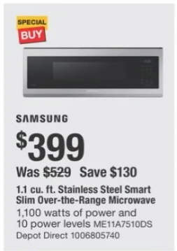 SAMSUNG 1.1 cu. ft. Stainless Steel Smart Slim Over-the-Range Microwave