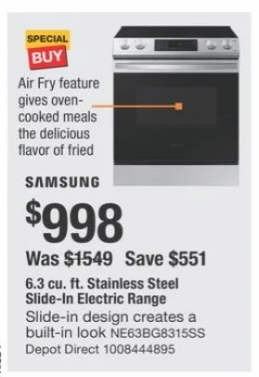 SAMSUNG 6.3 cu. ft. Stainless Steel Slide-In Electric Range
