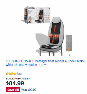 THE SHARPER IMAGE Massager Seat Topper 4-Node Shiatsu with Heat and Vibration - Grey