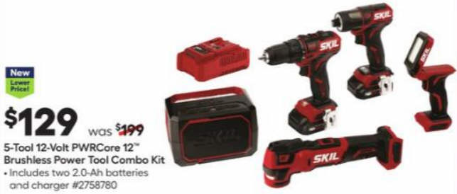 SKIL 5-Tool 12-Volt PWRCore 12!" Brushless Power Tool Combo Kit