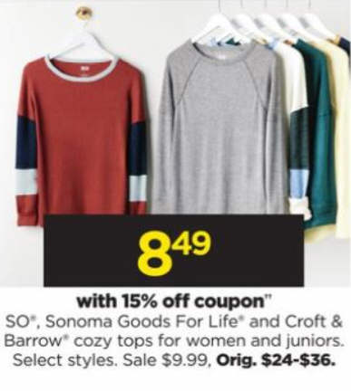 SO, Sonoma Goods For Life and Croft & Barrow Cozy tops for women and juniors