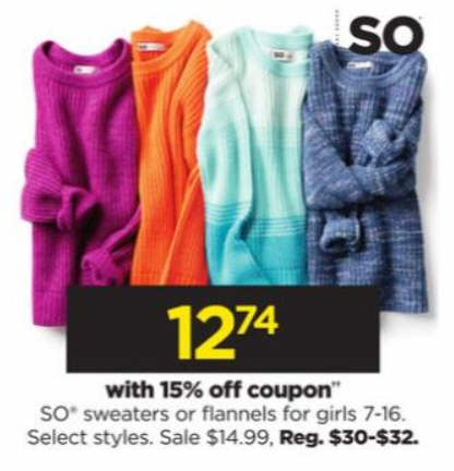 SO sweaters or flannels for girls 7-16