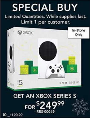 SPECIAL BUY Limited Quantitids.While supplies last.Limit 1 per customer.GET AN XBOX SERIES S