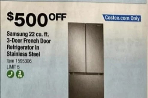 Samsung 22 cu. ft. Smart 3-Door French Door Refrigerator - $500 off